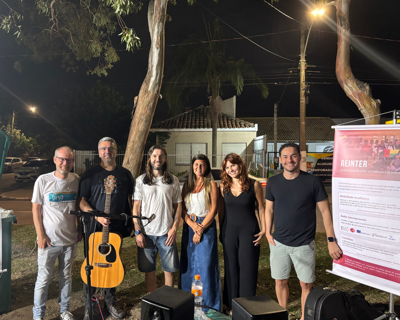 Last Friday (January 30), the “A FURG é Minha Praia” space hosted REINTER on the Beach, an event organized by the International Relations Office (REINTER) of the Federal University of Rio Grande (FURG). The event brought together the REINTER team, students, and the general public for an evening of cultural exchange, music, and integration.